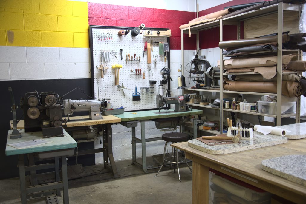 We also have a leather working zone with all the basic tooling and a leather-ready sewing machine.