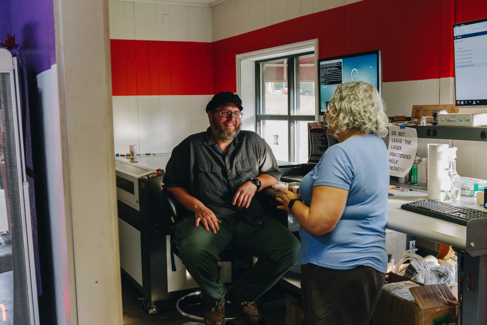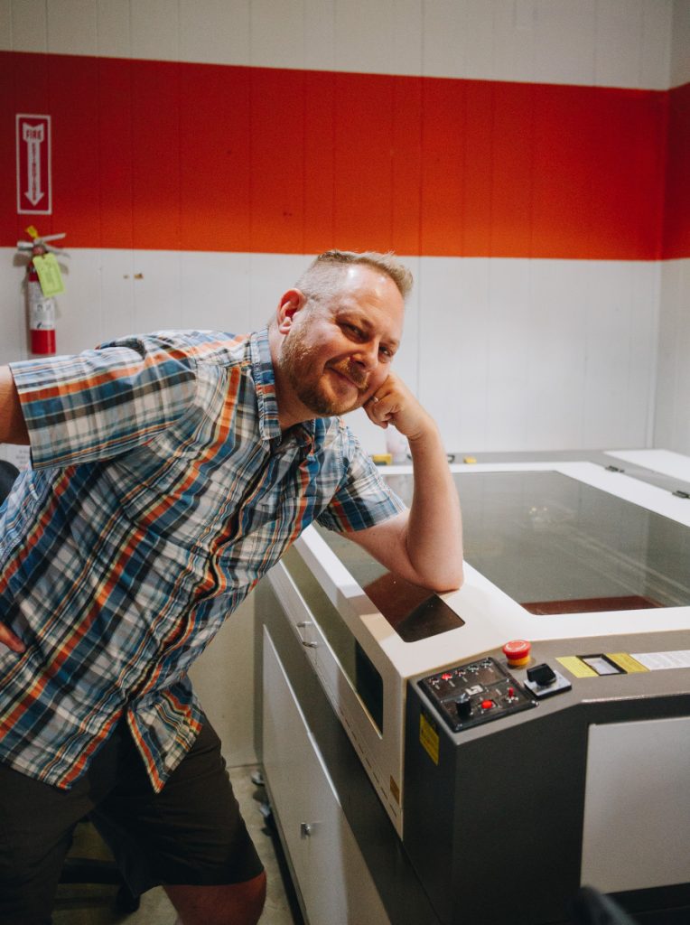 We also have a fiber laser that can cut and etch metal. We keep a stock of metal cards, coins, and slate coasters that members can purchase for use in projects.