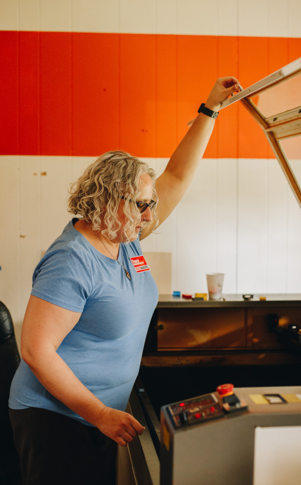 Our Laser Cutting zone is small but mighty. We have a G.Weike LC1390 (1300×900) Co2 Laser Cutting Machine that can cut organic materials and acrylic. It can also etch metal. We keep baltic birch and acrylic on hand for purchase and use in projects.